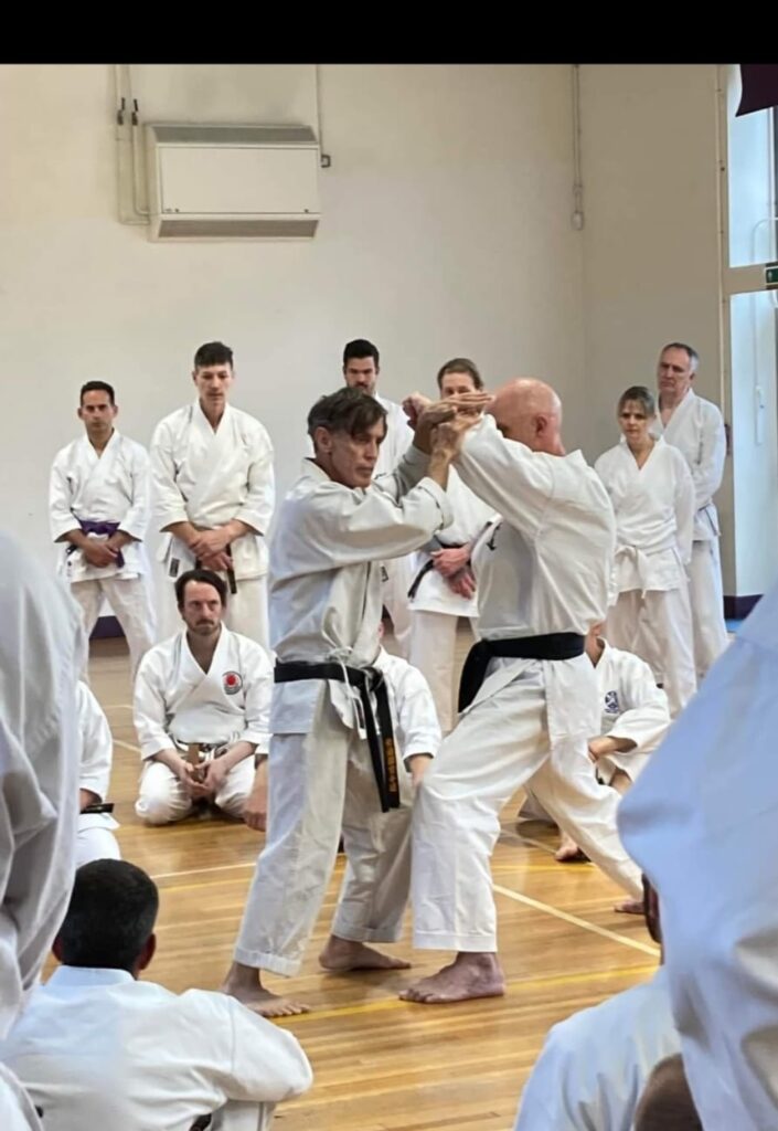 Some of our club members were lucky enough to attend a seminar on 12th June in Basingstoke taken by Rick Hotton Sensei ( 5th Dan). Rick is a 52 year old veteran of Karate-Do and has been Chief Instructor of West Wind Karate Dojo for the past 42 years. An innovative instructor, Hotton Sensei combines a mixture of classic training infused with Aiki principle to form a unique approach to Karate practice. Hotton Sensei’s teaching and approach can be viewed on his popular YouTube channel ‘Shotokan Karate’ which has gained a worldwide following.